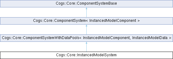 Public Member Functions inherited from Cogs::Core::ComponentSystemWithDataPools< InstancedModelComponent, InstancedModelData > | |